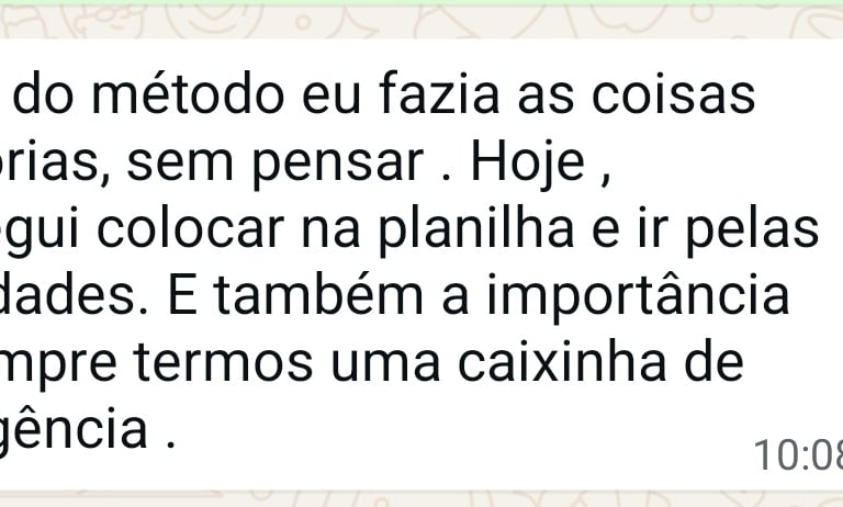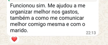 O método Dinhcontrol me ajudou a ser mais seletiva principalmente no supermercado e pensar no que vou fazer primeiro!